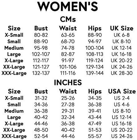 Tallas que se ajustan a la talla de mujer: la talla grande es adecuada para Estados Unidos talla 12 – 14. Busto: 42 pulgadas. Cintura: 34 pulgadas. Caderas: 44 pulgadas.